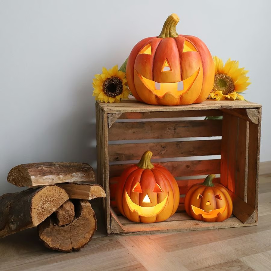 Šis didelis besišypsantis moliūgo veidas idealiai tinka rudenį papuošti įėjimo erdvę ir ypač tinka Helovinui. Pro gale esančią angą galima įdėti įprastą arba šiek tiek didesnę arbatinę žvakutę arba LED lemputę. Vakare ir tamsoje šio moliūgo ertmė ima švytėti nuo šviesos. Tai paprastas ir gražus bauginantis būdas paįvairinti ne tik įėjimo erdvę, bet ir svetainę ar sodą!