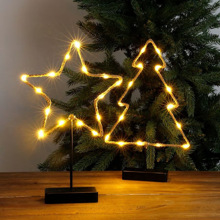 LED lempučių dekoracija: žvaigždė arba eglutė