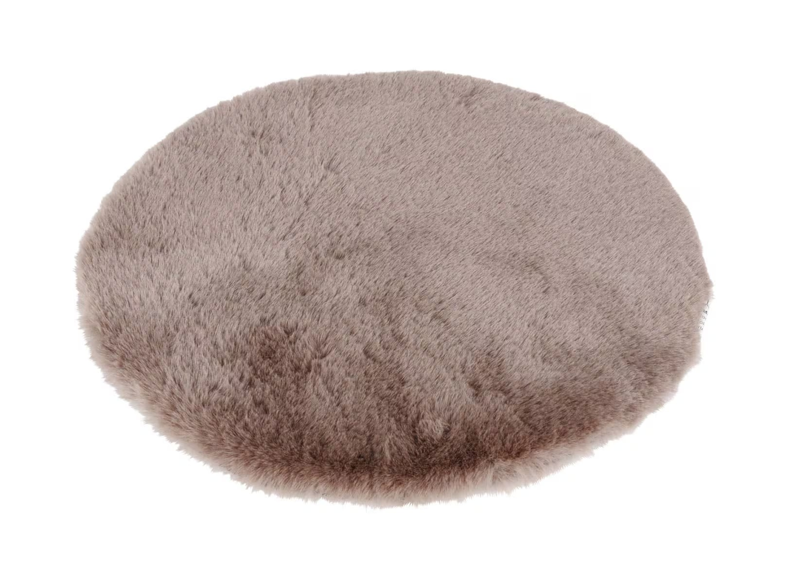 Itin minkštas, apvalus sėdimosios dalies padas pagamintas iš dirbtinio kailio. Absoliučiai nesenstantis dekoratyvinis elementas. Apvalus dirbtinio kailio kilimėlis taip pat gali būti puikiai integruotas į stalo puošmeną.